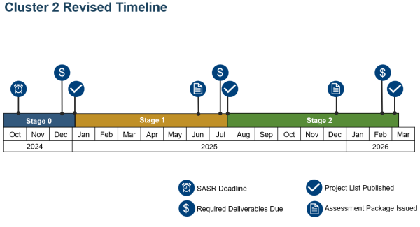 To accommodate the completion of studies that consider the expected project cancellations in late 2025/early 2026, we have extended the SASR submission deadline for Cluster 3 from February to April 2026.