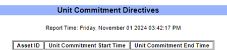 The Unit Commitment Directives Report will display information related to Unit Commitment Directives, 60 days after the Unit Commitment End Time.