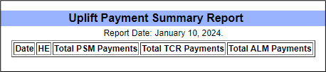 - Uplift Charge Summary (Previously called PSM Charge Summary)